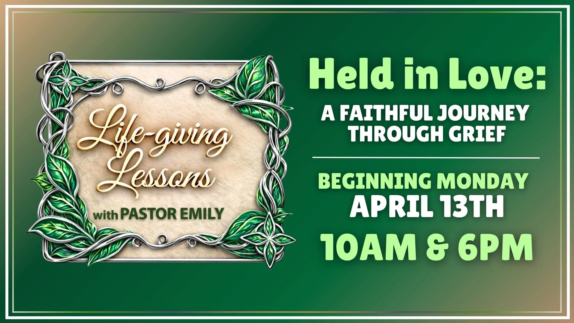 Pastor Emily will be leading a six-week study on Grief titled “Held in Love: A Faithful Journey Through Grief” where we will explore different areas of grief, and how to see/find/make joy in healing while faced with grief. This will be an uplifting class, with scripture, devotion time, prayer, and community.
