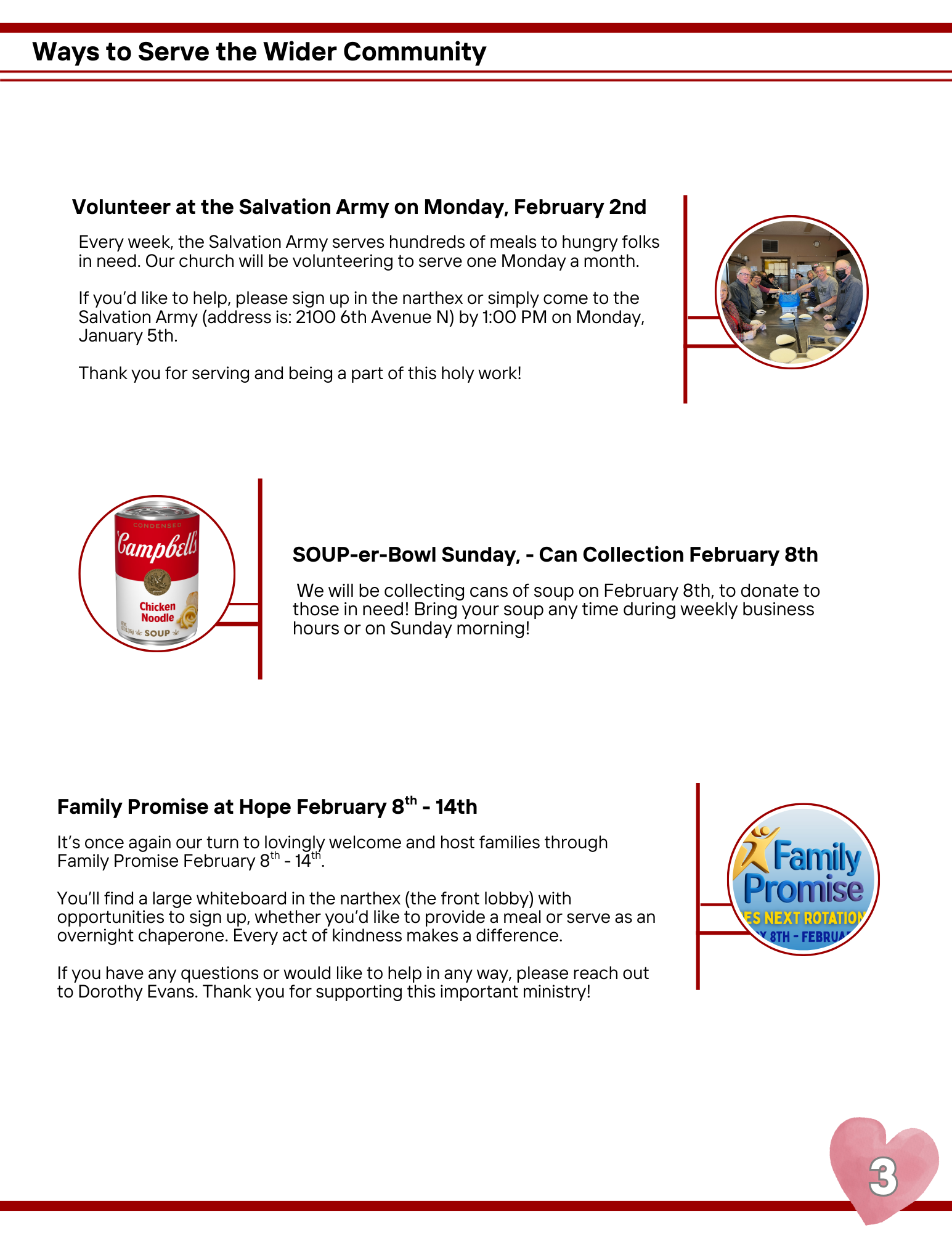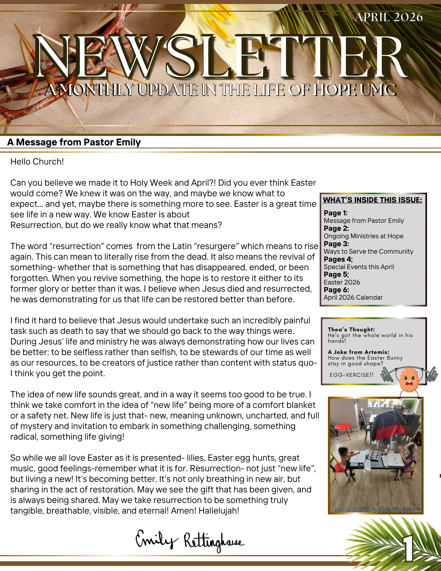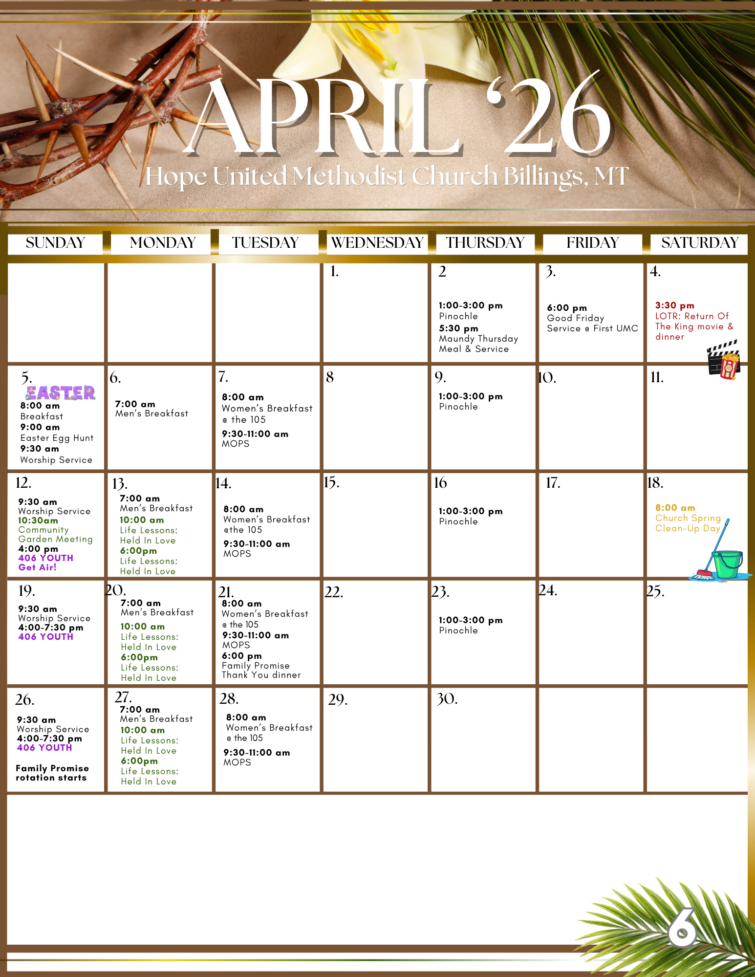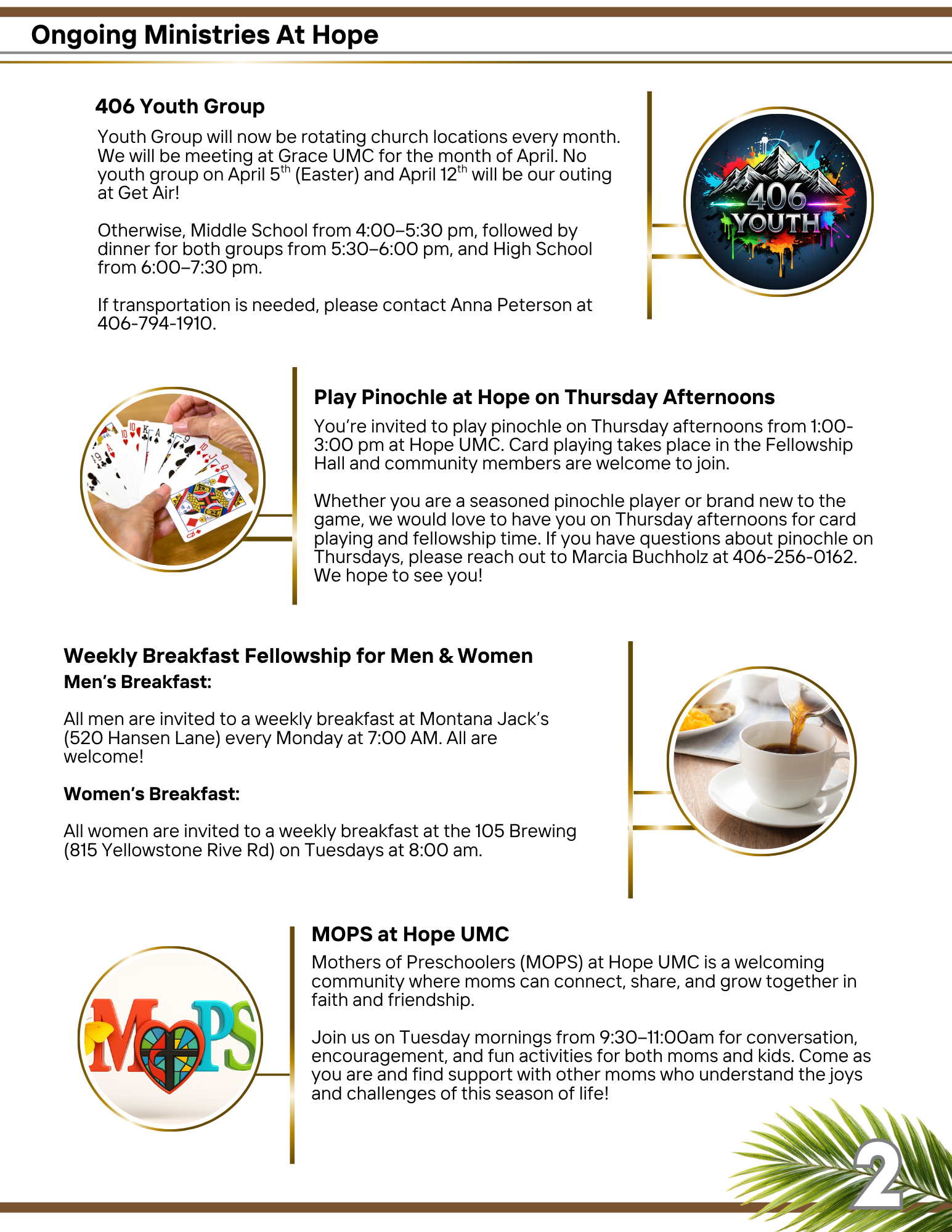 Here you’ll find our monthly Newsletter. It shares all the activities and events happening at Hope UMC. If you have any content you’d like to see in a month’s newsletter, you can contact Pastor Emily at pastoremily@hopeumcbillings.org